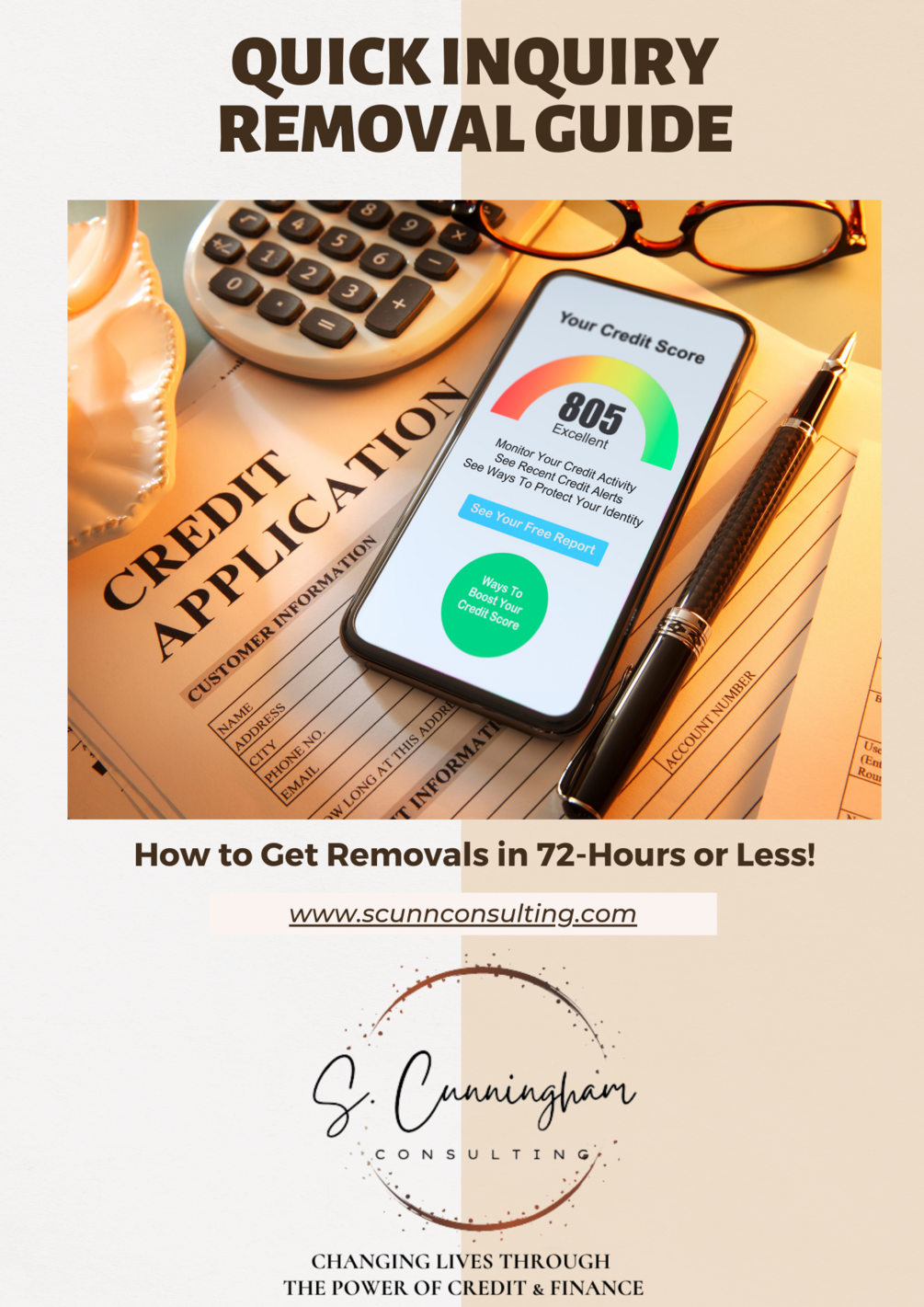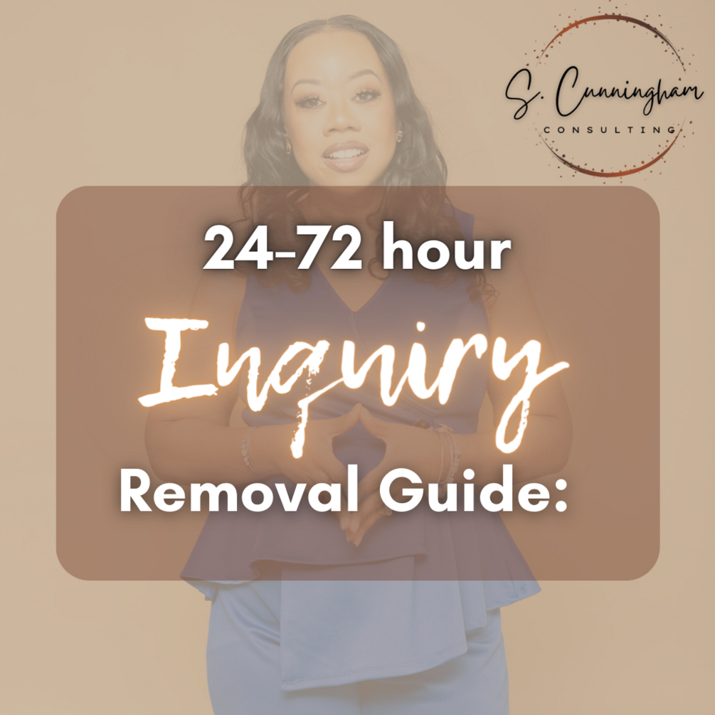 Grab your inquiry removal guide and remove your inquiries in less than 72 hours. This guide allows you to Do it yourself and walks you through the process of removing your inquiries. By removing your inquiries, you can raise your score up to 10 points!